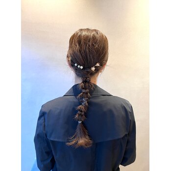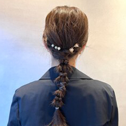 私たちのサロン「NICO ニコ」では、ロングヘアを活かした編みおろしアレンジが大人気です!髪をゆるく編むことで、エレガントでフェミニンな印象を与え、ふわふわ感を引き出すことでかわいらしさもアップします。パールやお花のピンをプラスすれば、さらに華やかに!お客様一人ひとりに合ったアレンジを提案していますので、ぜひお任せください。